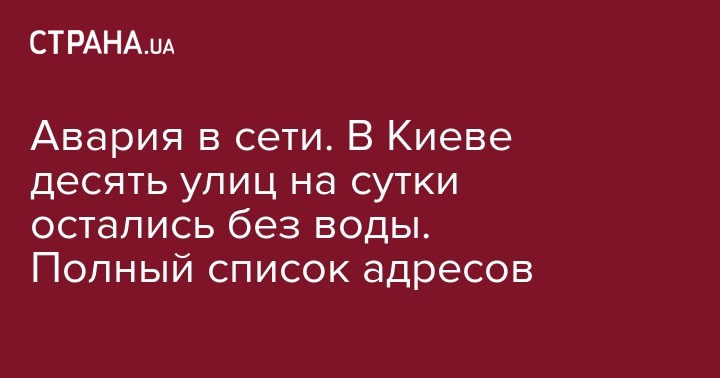 Во вторник, 27 ноября, в Киеве без подачи воды остались дома на десяти улицах. Это произошло из-за повреждений на сети холодного водоснабжения, сообщает пресс-служба КП "Киевводоканал" на своей странице в Facebook.