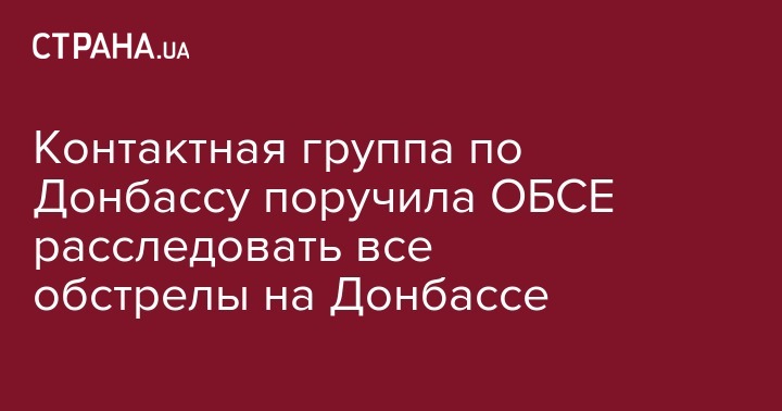 Трехсторонняя контактная группа по ситуации на Донбассе поручила ОБСЕ расследовать все случаи нарушений режима прекращения огня. Об этом по итогам заседания группы на своей странице в Facebook сообщила пресс-секретарь представителя Украины, второго президента Украины Леонида Кучмы Дарка Олифер.