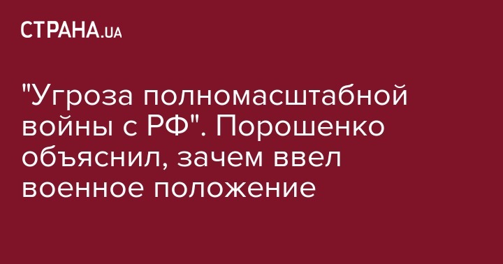 Президент Петр Порошенко объяснил необходимость введения военного положения в стране ростом числа военной техники у границы с Россией. Об этом сообщает "Интерфакс-Украина"