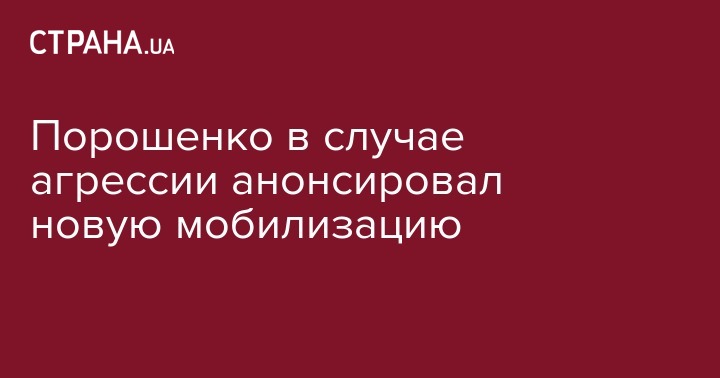 Президент Украины Петр Порошенко заявляет, что в случае агрессии России против Украины будет частичная мобилизация резерва первой очереди. Об этом глава украинского государства заявил в интервью украинским телеканалам.