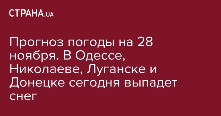 В Луганске, Донецке и Запорожье 28 ноября выпадет снег. И днем, и ночью в этих регионах будет удерживаться небольшой минус: на уровне -1...-3 градусов. Впрочем, такая же погода ожидает жителей трех южных областей - Одесской, Николаевской и Херсонской.