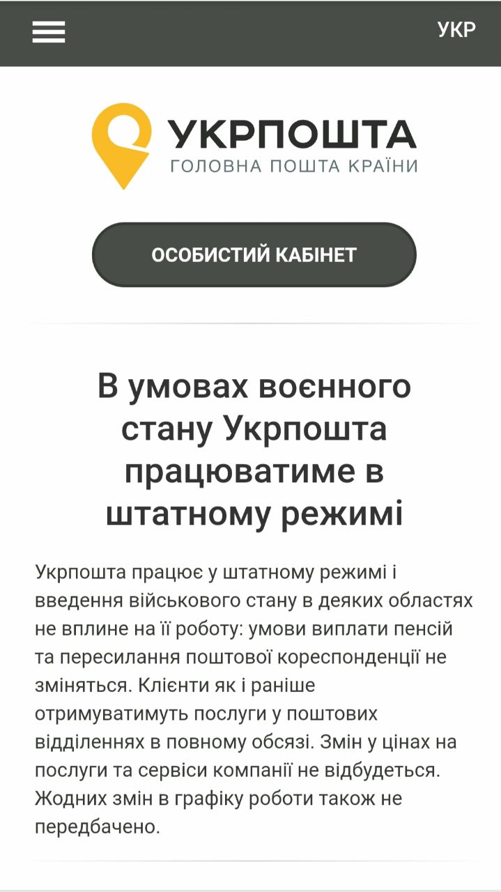"На нашем сайте есть информация по этому вопросу, что мы работаем в штатном режиме и никаких изменений или ограничений пока нет. С любого отделения связи вы можете отправить письмо или посылку", - сообщают на горячей линии "Укрпочты".