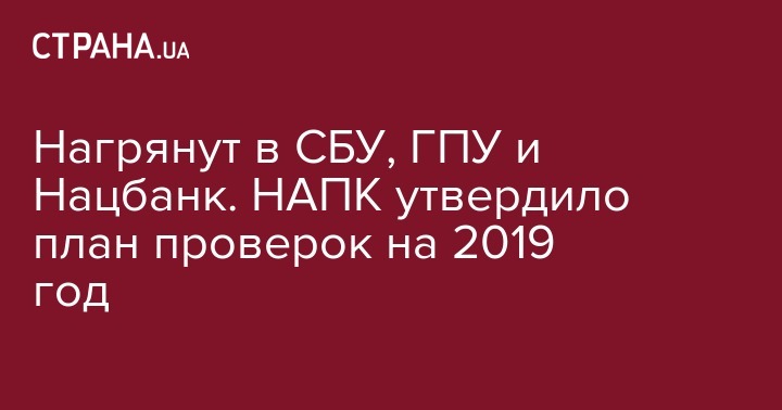 Нагрянут в СБУ, ГПУ и Нацбанк. НАПК утвердило план проверок на 2019 год