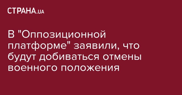 Юрий Бойко, народный депутат и основатель "Оппозиционной платформы - За Життя" заявил, что его политсила намерена добиться отмены военного положения введенного в 10 областях Украины.
