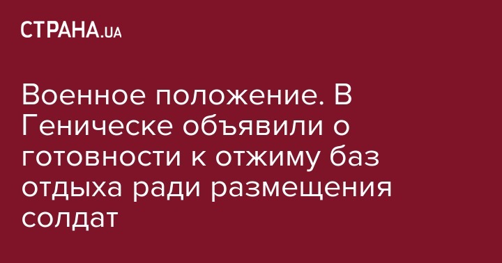 Вдоль Арабатской стрелки в отелях и базах отдыха разместят военных на время военного положения. Готовность изъять у предпринимателей отели выразил глава Генической районной государственной администрации Александр Воробьев во время пресс-конференции с журналистами, передают "НикВести".