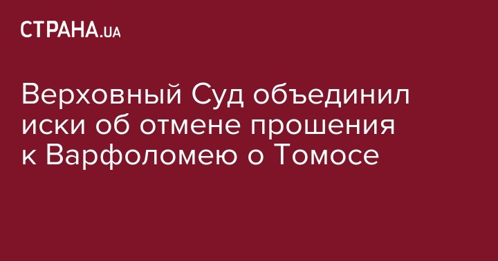 Верховный Суд объединил иски об отмене прошения к Варфоломею о Томосе