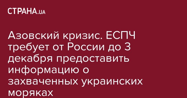 Европейский суд по правам человека (ЕСПЧ) обязал Россию до 3 декабря предоставить информацию об украинских моряках, захваченных в Керченском проливе.