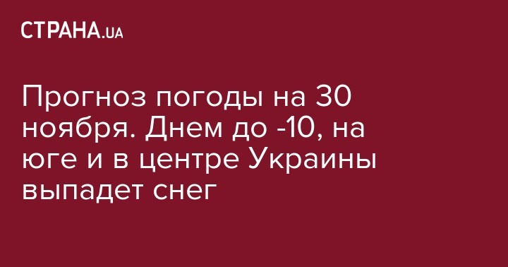 Прогноз погоды на 30 ноября. Днем до -10, на юге и в центре Украины выпадет снег