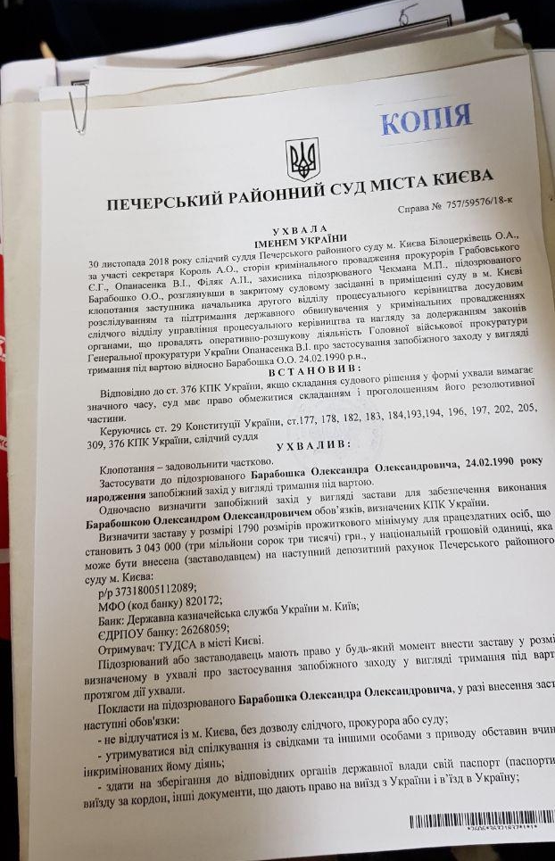 14:30 Барабошко взяли под арест на 2 месяца с альтернативой внесения залога в 3 млн.