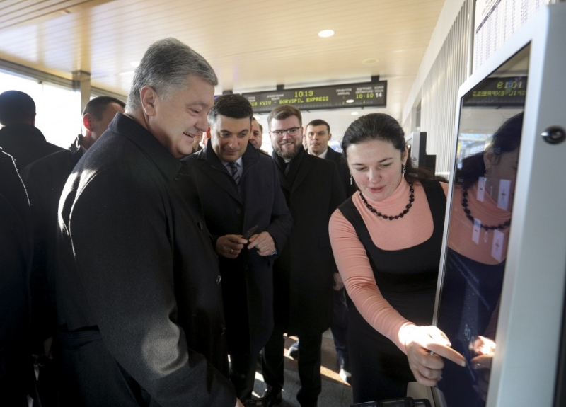 Участие в запуске поезда приняли президент Петр Порошенко, премьер Владимир Гройсман, министр инфраструктуры Владимир Омелян, и. о. главы правления "Укрзализныци" Евгений Кравцов. Все они проехались по маршруту от вокзала до станции "Борисполь - аэропорт".