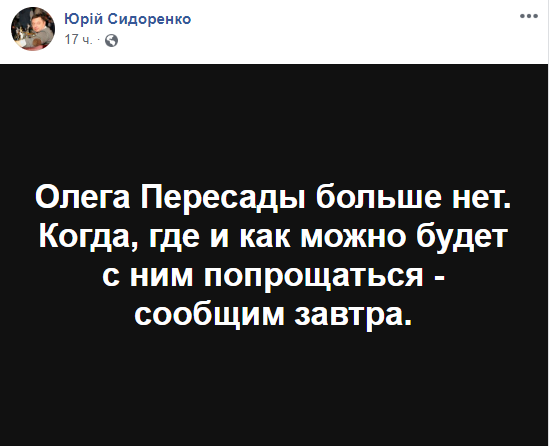 Знакомые Олега Пересады рассказали, что, по словам его дочери, мужчина умер от обморожения.