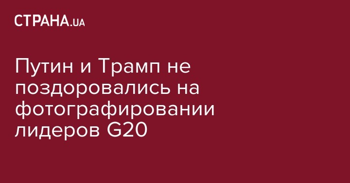 Президент России Владимир Путин и президент США Дональд Трамп не поздоровались на церемонии фотографирования лидеров стран G20 в Буэнос-Айресе, передает "Интерфакс".