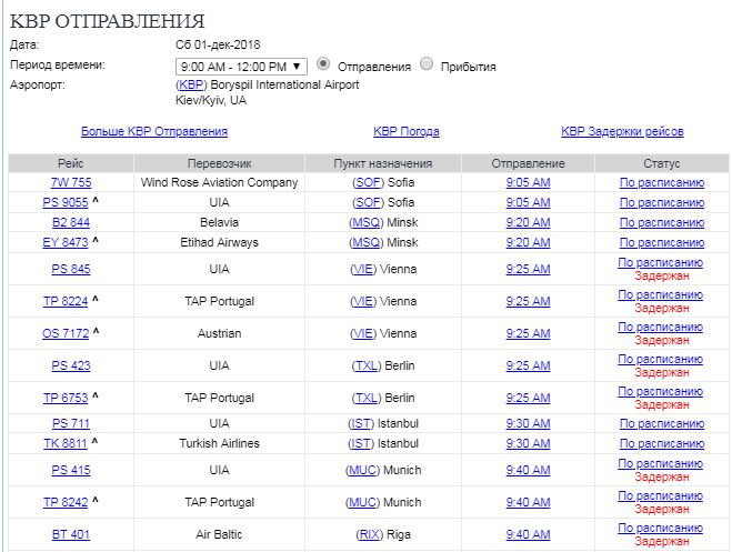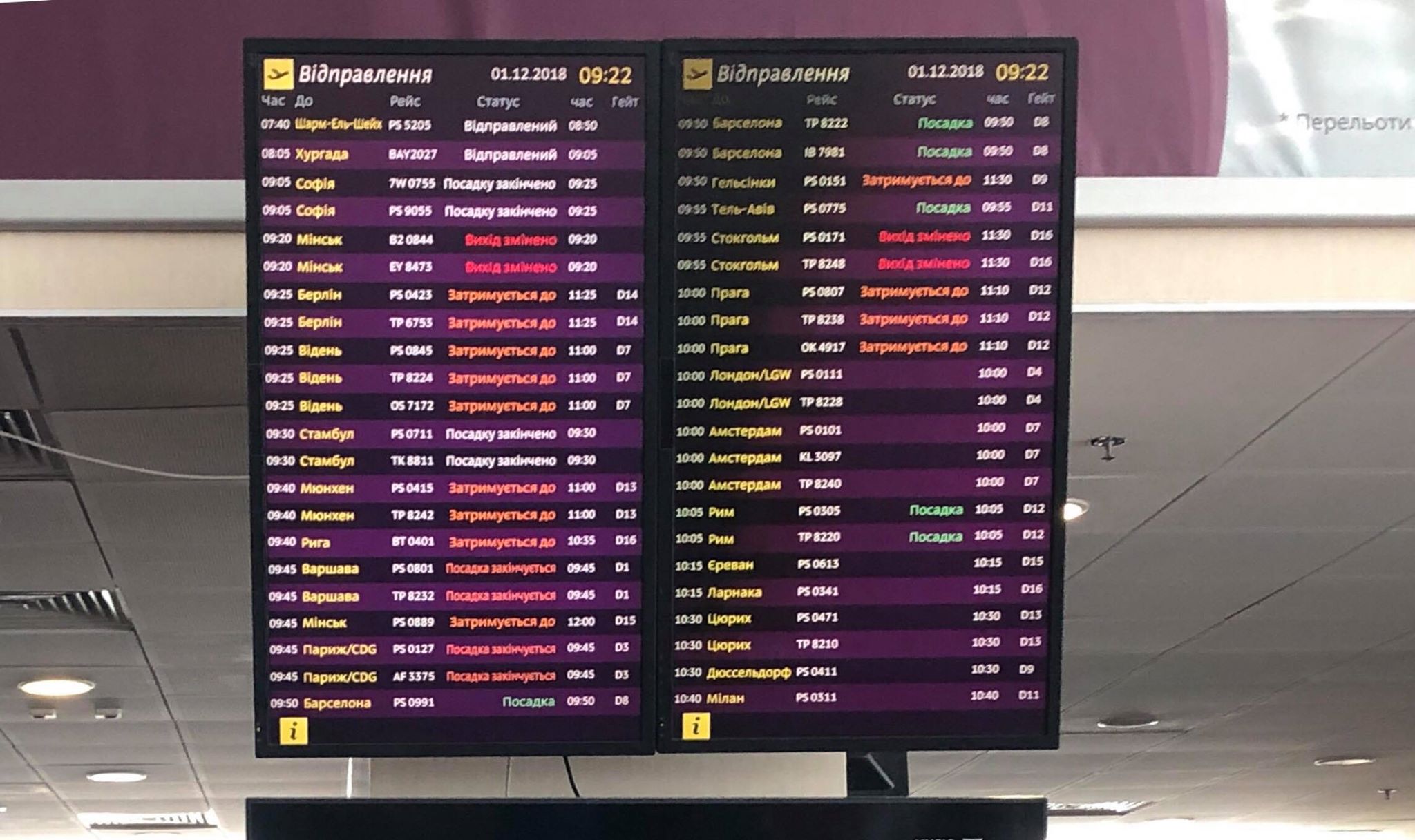 Сегодня, 1 декабря, в аэропорту "Борисполь" массово переносят рейсы из-за сложных погодных условий. Об этом свидетельствуют данные онлайн-табло "Борисполя". На несколько часов отложены вылеты рейсов в Мюнхен, Вену, Берлин, Ригу, Минск, Хельсинки, Прагу.
