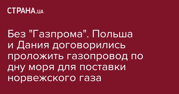 Польша и Дания договорились проложить газопровод Baltic Pipe по дну Балтийского моря длиной 900 километров, который должен начать поставки норвежского газа в Польшу в 2022 году. Об этом сообщил премьер-министр Польши Матеуш Моравецкий в Twitter.