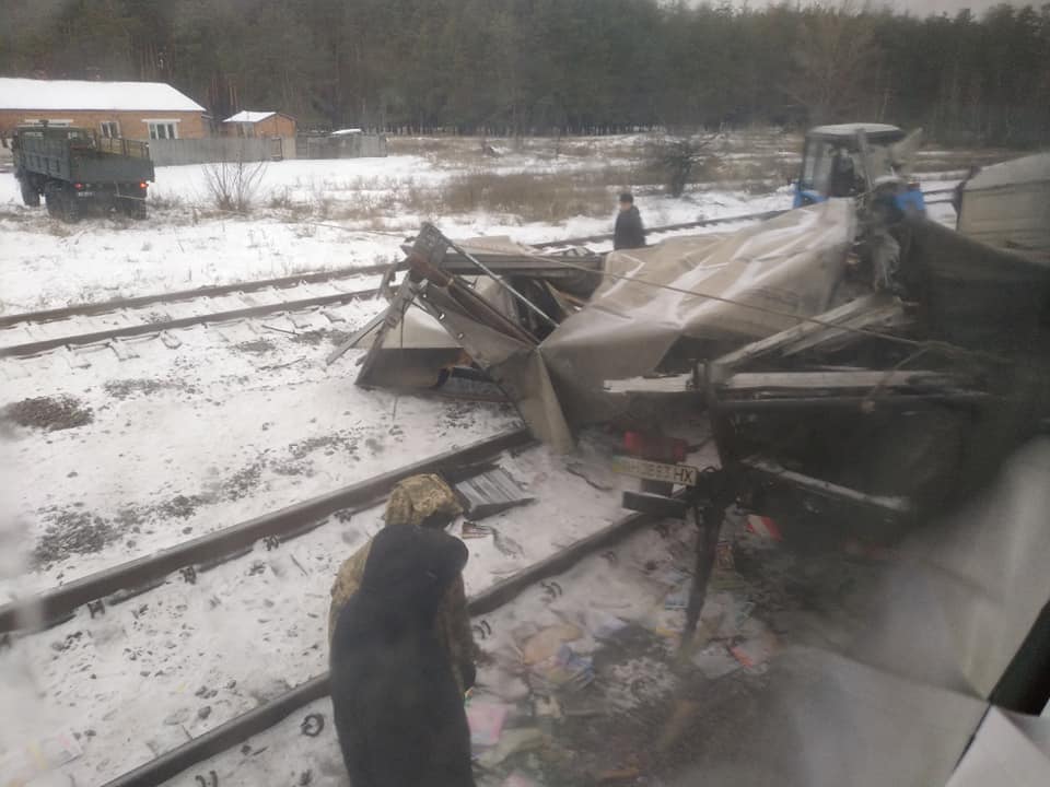 Под Харьковом поезд снес застрявшую на рельсах фуру с книгами. Фото