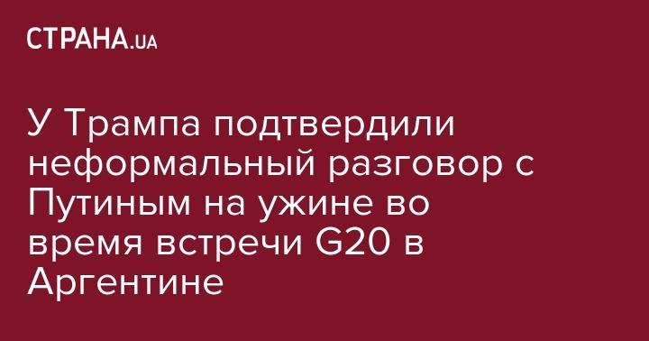 Ранее пресс-секретарь президента России Дмитрий Песков подтвердил, что у Владимира Путина и президента США Дональда Трампа на саммите "двадцатки" в Буэнос-Айресе было короткое общение. "Да, короткий контакт был", - сказал Песков журналистам.