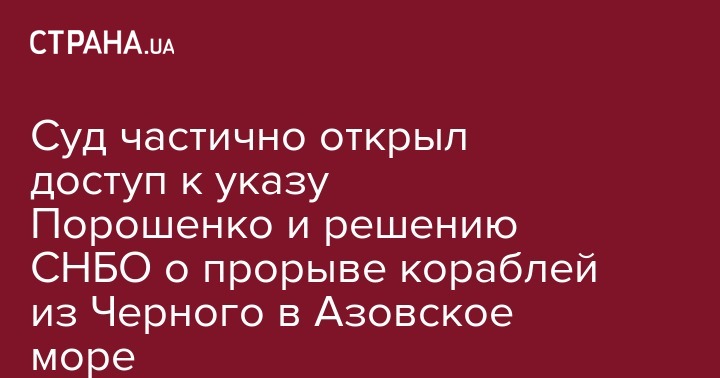 Суд частично открыл доступ к указу Порошенко и решению СНБО о прорыве кораблей из Черного в Азовское море