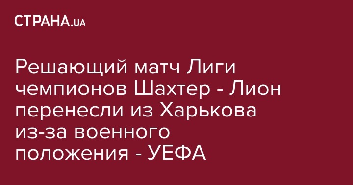 Решающий матч Лиги чемпионов Шахтер - Лион перенесли из Харькова из-за военного положения - УЕФА