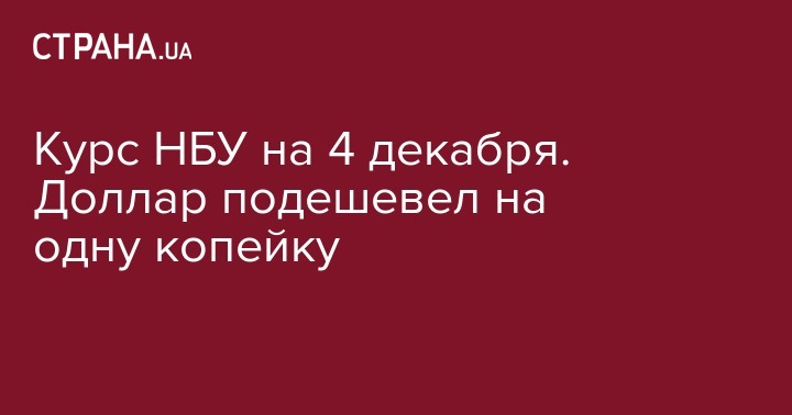 Курс НБУ на 4 декабря. Доллар подешевел на одну копейку