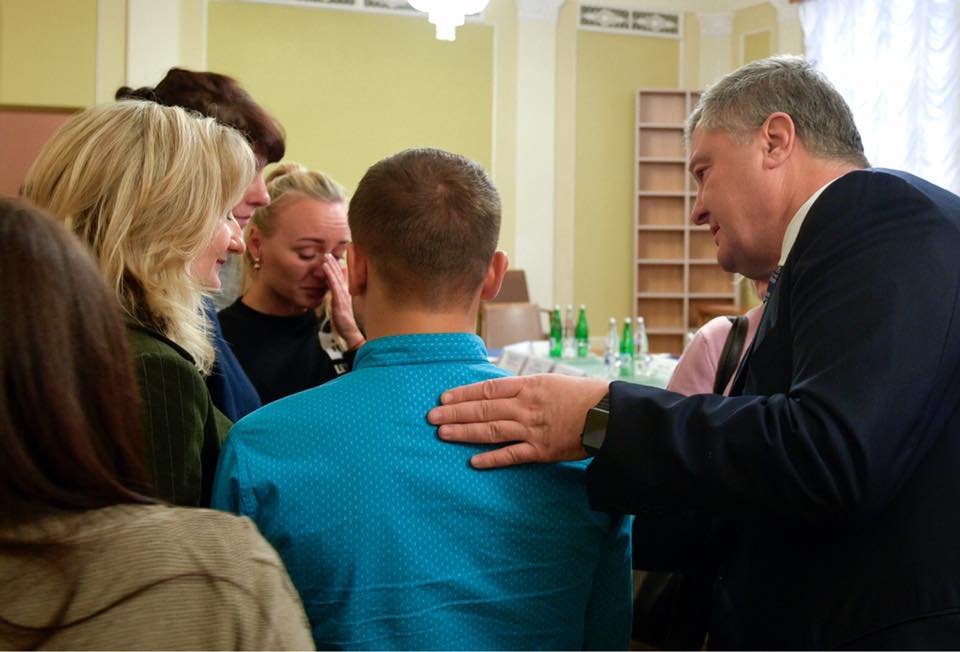 На снимках, выложенных в аккаунте президента в Facebook видно, что родственники захваченных моряков провели встречу в слезах. Фото: facebook.com/petroporoshenko
