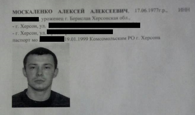 Алексей был неоднократно судим за убийства и грабежи вместе со своим отцом - Алексеем Москаленко. Их банду под названием "Москали" хорошо знает вся Херсонская область. В последнее время Москаленко-младший занимал должность помощника-консультанта депутата Херсонского областного совета от Радикальной партии Ляшко Николая Ставицкого.