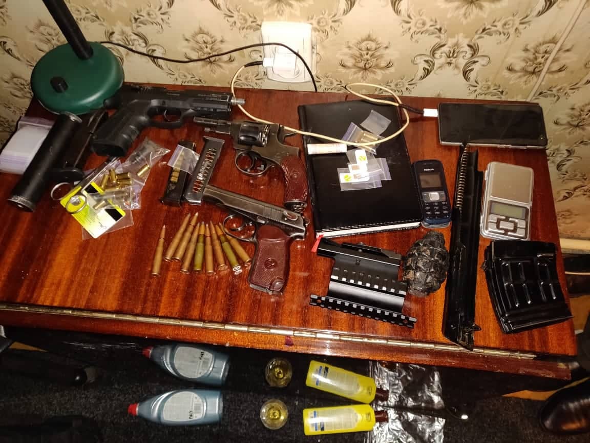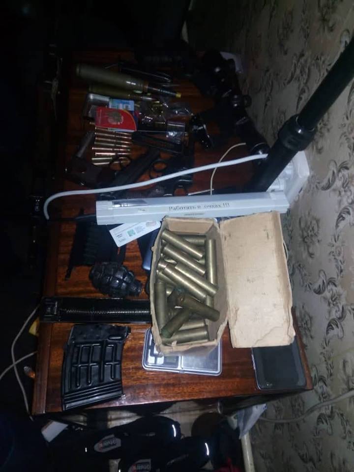 Во время обыска по месту жительства экс-капитана полиции, подозреваемого в организации наркопритона, обнаружили снайперскую винтовку "СВД" с оптическим прицелом и снаряженным магазином, пистолет Макарова, револьвер, пистолет с глушителем, корпус гранаты Ф-1, около 250 патронов различного калибра, 6 пакетов метамфетамина и пакет каннабиса.