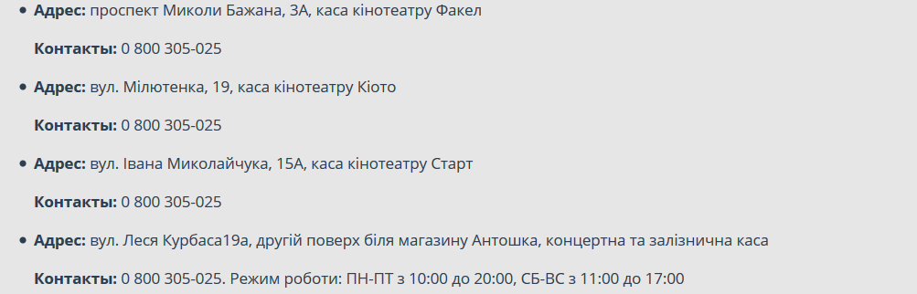 - в розничной торговой сети Киева, по следующим адресам.