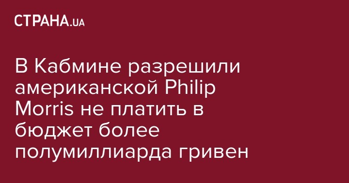 В Кабмине разрешили американской Philip Morris не платить в бюджет более полумиллиарда гривен