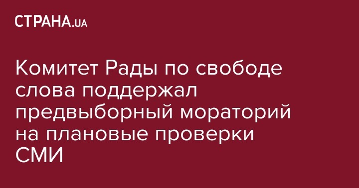 Сегодня Комитет Верховной Рады по вопросам свободы слова и информполитики рекомендовал нардепам принять постановление о предвыборном моратории на плановые проверки СМИ. Об этом сообщает корреспондент Укринформа.