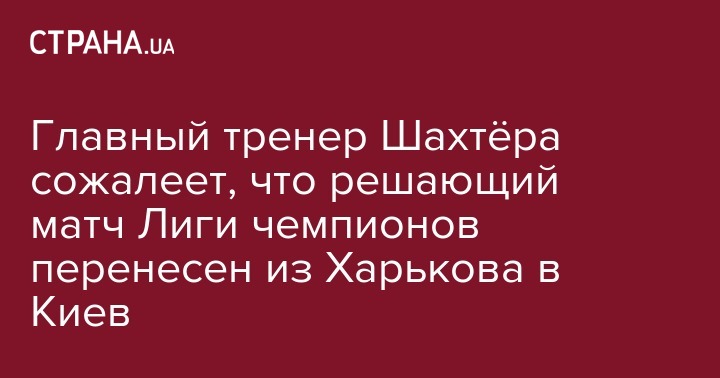 Главный тренер Шахтера Паулу Фонсека выразил сожаление от того, что решающий матч группового этапа Лиги Чемпионов с французским "Лионом" придется сыграть не в Харькове.