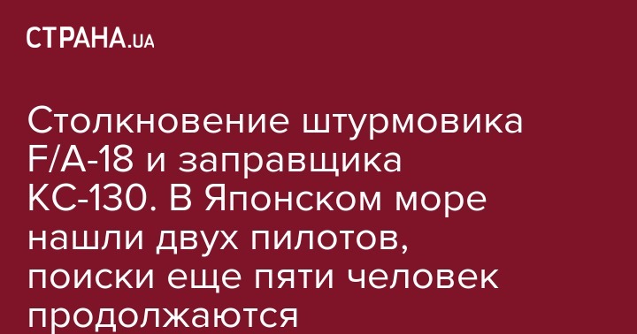 В небе над Японским морем произошел авиационный инцидент. Здесь столкнулись штурмовик F/A-18 и самолет-заправщик КС-130. В ходе поисково-спасательной операции уже были обнаружены два американских пилота. Об этом передает Интерфакс со ссылкой на ​телеканал NHK.