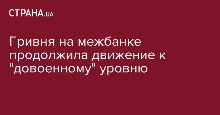 Гривня на межбанке продолжила движение к "довоенному" уровню