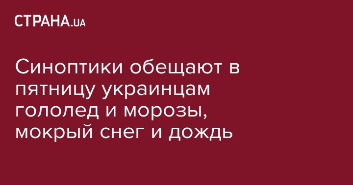 Синоптики обещают в пятницу украинцам гололед и морозы, мокрый снег и дождь