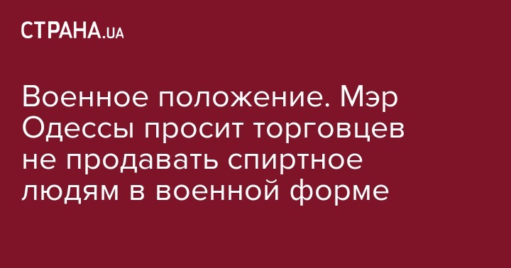 Кроме того, мэр рекомендует всем субъектам хозяйствования, действующим на территории Одессы, воздержаться от продажи алкоголя и спиртосодержащих веществ людям в военной форме.
