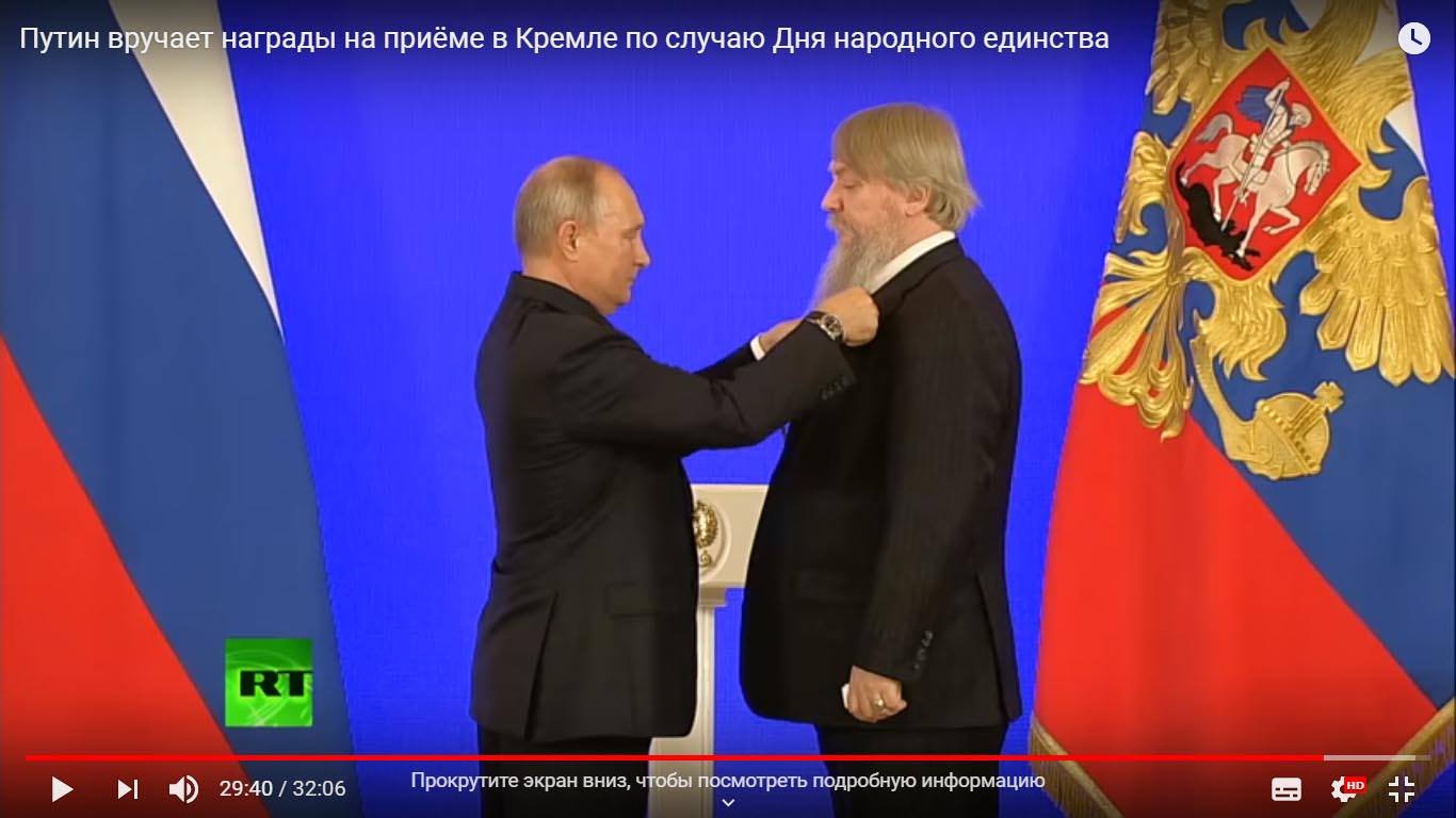 В начале ноября во время конгресса соотечественников он был лично награждён президентом России Владимиром Путиным "Пушкинской медалью".