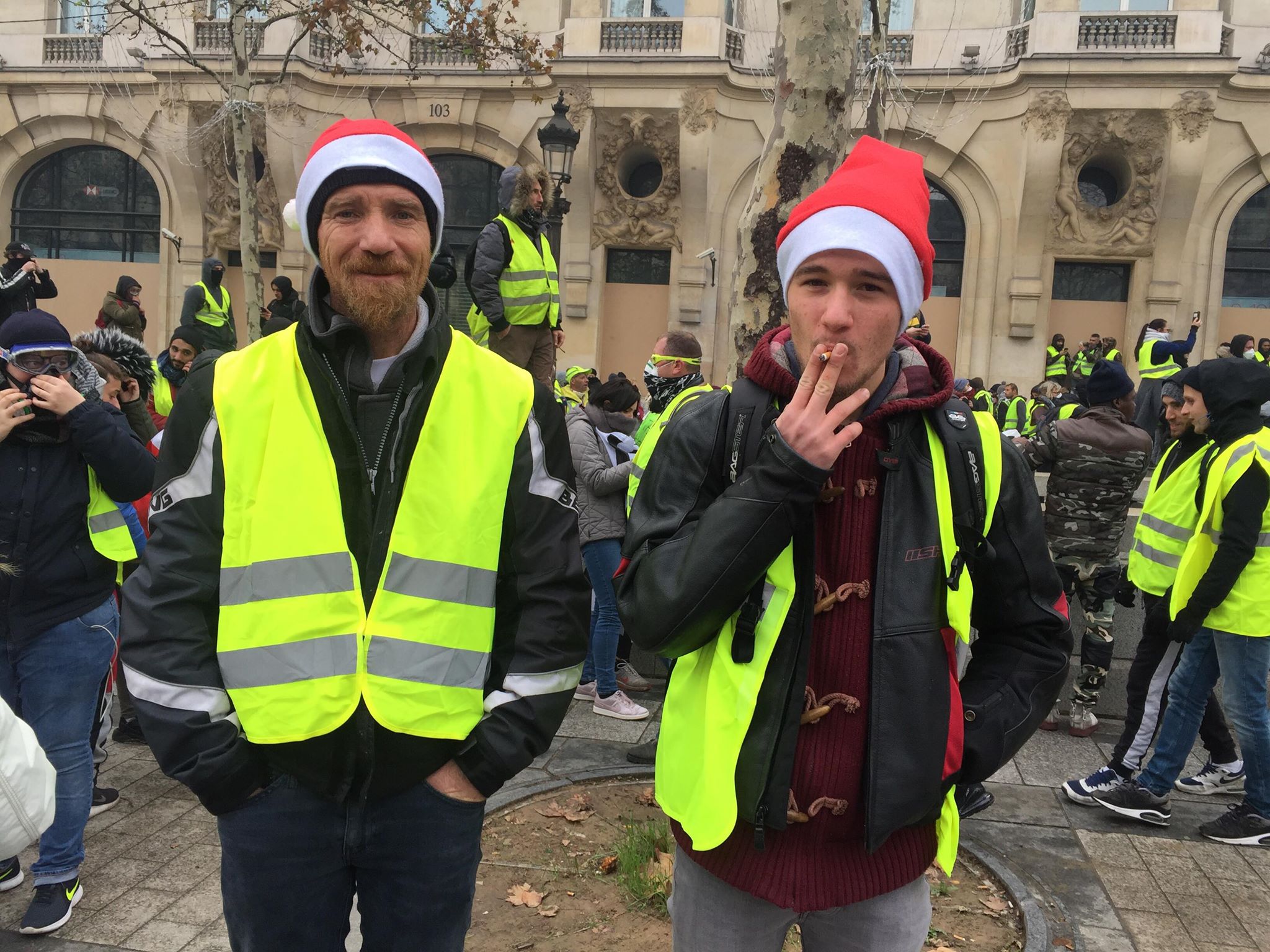 Полиция отгоняла участников "Желтых жилетов" подальше от Триумфальной арки. Теперь воздух на Елисейских полях наполнен жуткой смесью травки и слезоточивого газа. Многие из активистов не скрываясь открыто курят марихуану.