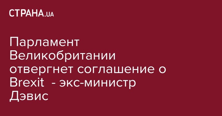 Экс-министр по вопросам выхода Великобритании из ЕС Дэвид Дэвис заявил, что британский парламент отвергнет предлагаемое премьер-министром страны Терезой Мэй соглашение по Brexit. Об этом сообщает Sky News.