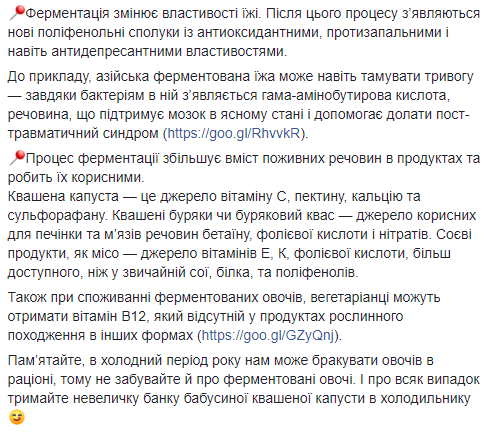 Супрун отмечает, что в ферментированных продуктах молочнокислые бактерии поедают сахара и клетчатку овощей или бобов, и образуют молочную кислоту, которая действует как консервант. Она не дает вредным бактериям и грибкам размножаться и портить продукт.