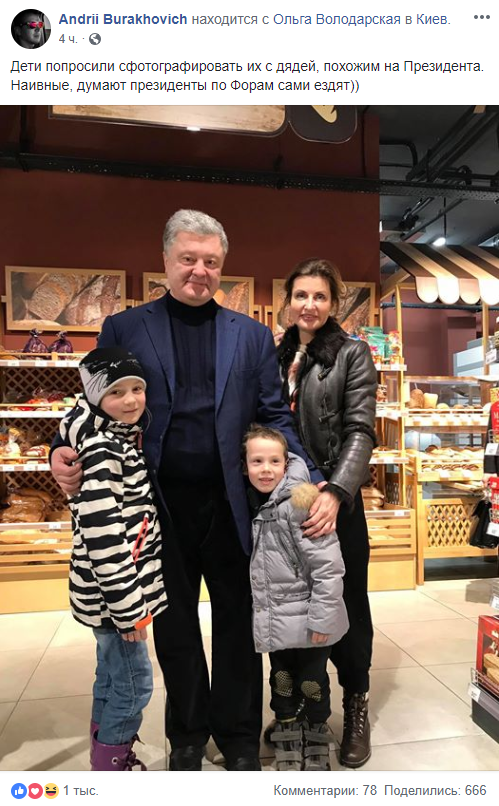 Режиссуру этого фото косвенно подтверждает скорость с какой данный пост зятя нардепа подхватил президентский советник Юрий Бирюков и известный блогер, лояльный к Порошенко - Мирослав Олешко.