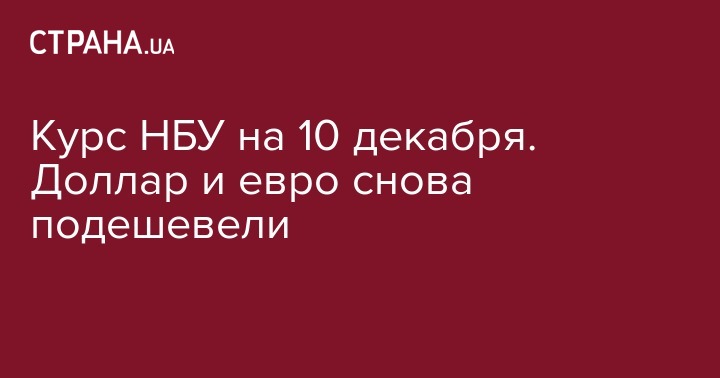 Курс НБУ на 10 декабря. Доллар и евро снова подешевели