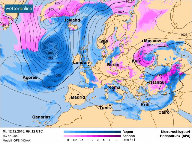 12 декабря циклон охватит непогодой большинство Украины, кроме западных областей. В Киеве 12-13 декабря погода также усложнится, будет мокрый снег, порывистый ветер и гололед. Температура воздуха ночью до -1 градуса, днем 0...+1 градус.