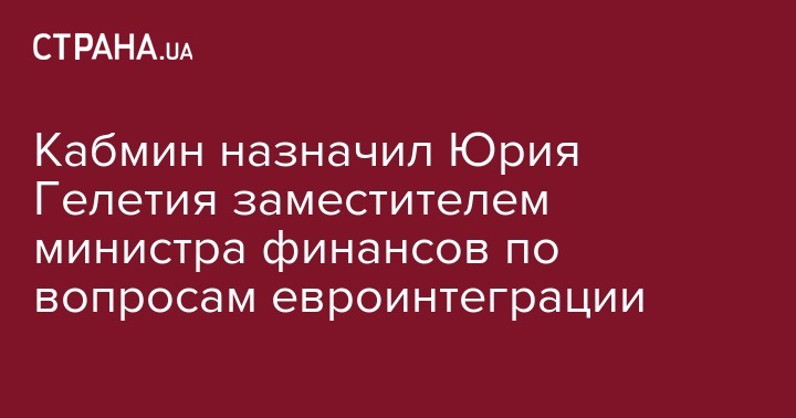 Кабинет министров Украины переназначил заместителя министра финансов Юрия Гелетия заместителем министра финансов по вопросам европейской интеграции.