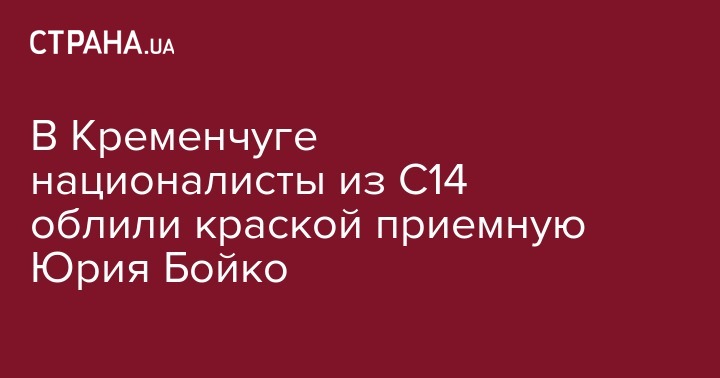 В ночь на 9 декабря представители ультраправой организации "С14" испортили фасад общественной приемной народного депутата, сопредседателя "Оппозиционная платформа - За життя" Юрия Бойко в городе Кременчуге Полтавской области.