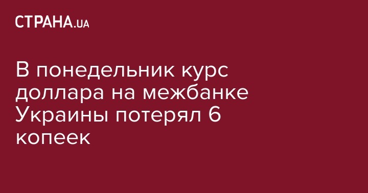 В понедельник курс доллара на межбанке Украины потерял 6 копеек