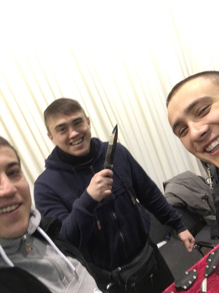 "Стерненко купил новый нож", - радостно сообщил Синицын. На снимке Стерненко (справа) выглядит очень довольным.