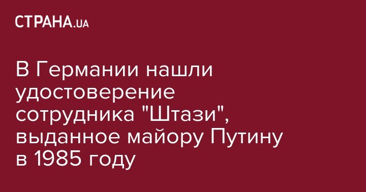 В Германии нашли удостоверение сотрудника "Штази", выданное майору Путину в 1985 году