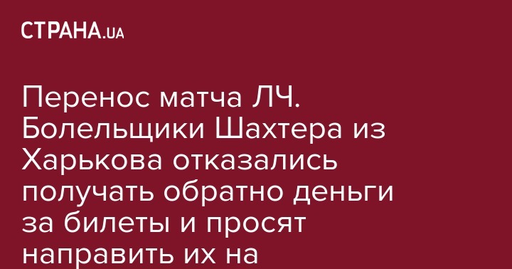Перенос матча ЛЧ. Болельщики Шахтера из Харькова отказались получать обратно деньги за билеты и просят направить их на благотворительность