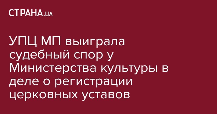 Украинская православная церковь выиграла судебный спор о нерегистрации Министерством культуры Украины уставов епархий и монастырей УПЦ. Об этом сообщает Информационо-просветительский отдел УПЦ.