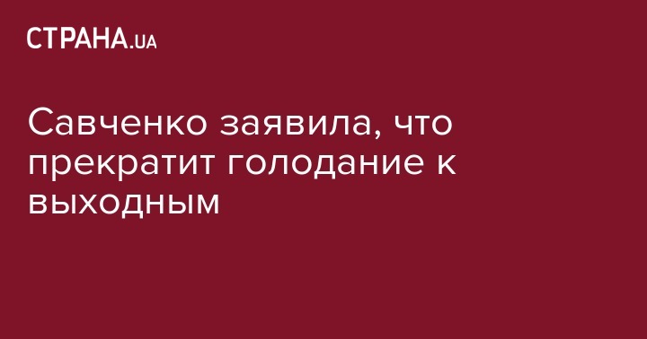Савченко заявила, что прекратит голодание к выходным