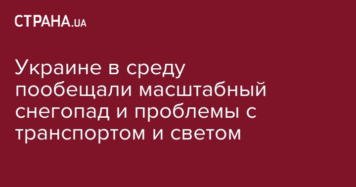 Украине в среду пообещали масштабный снегопад и проблемы с транспортом и светом